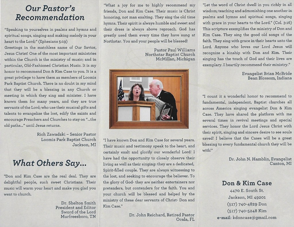 Contact Don or Kim if you would like to have them minister at your church or event. Kim: 517-740-5248 Don: 517-740-4829